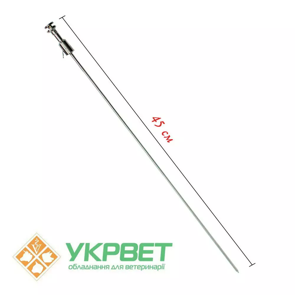 Паетовводитель для осеменения коров 45 смИспользуются для увеличения эффективности искусственного осеменения крупного рогатого скота. Изготовлен из нержавеющей стали и сертифицирован ISO. Прошел испытания на территории Украины и уже много лет успешно используется в Европе и Северной Америке.