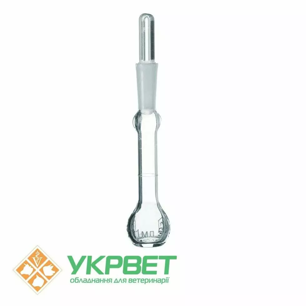 Пикнометр предназначен для определения плотности веществ. Относится к точным измерительным приборам. Точность прибора: допустимая погрешность составляет ±5,0 мл. Для того чтобы точно отмерить 100 мл жидкости, необходимо держать метку на горловине пикнометра на уровне глаз.